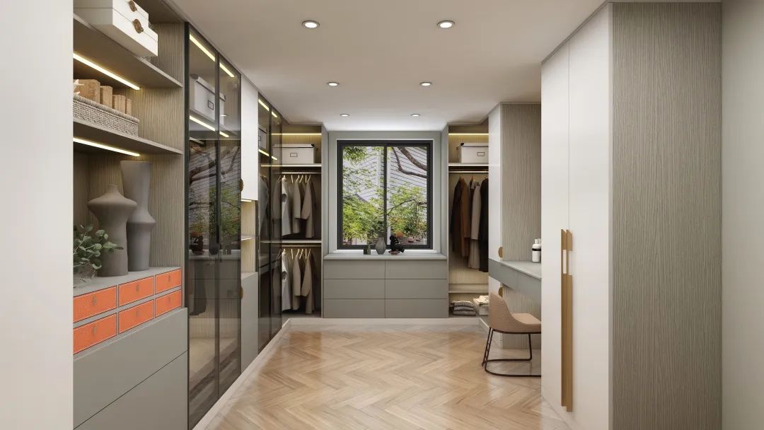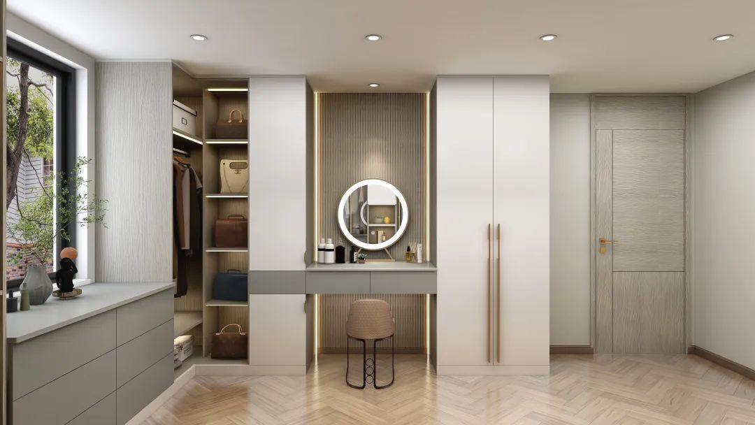 独立衣帽间色调柔和,造型简约